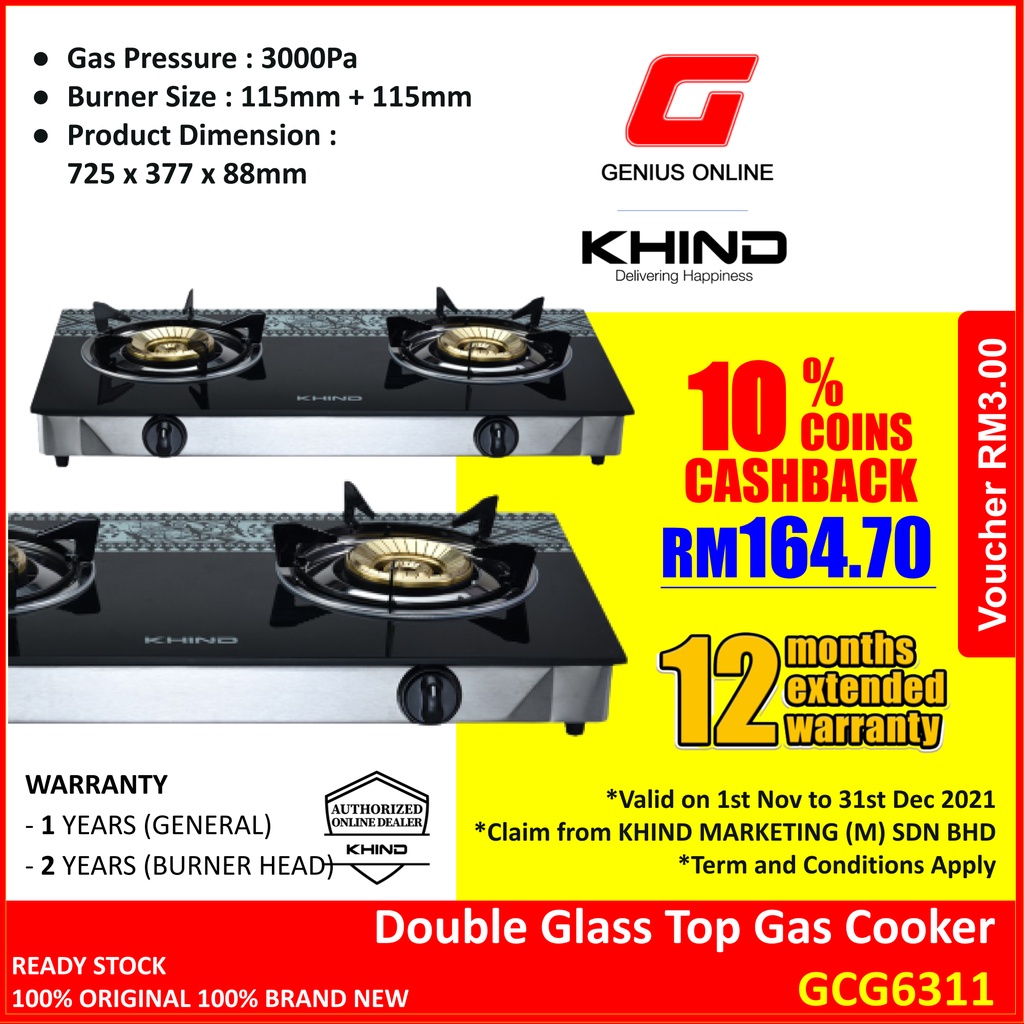 Khind Glass Top Gas Cooker Dapur Gas Kaca Gcg6311 Shopee Malaysia